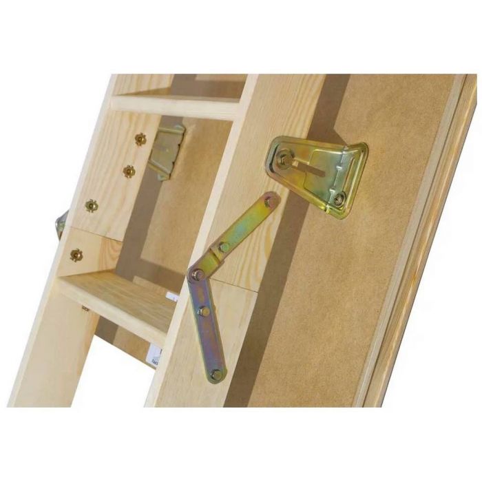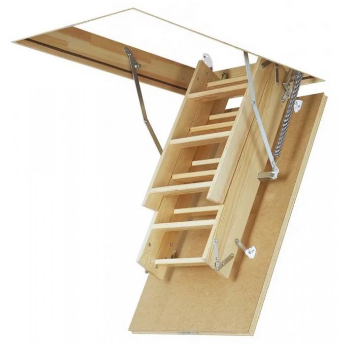 Чердачная лестница LWS Plus изготовлена из сосны, укомплектована утепленной крышкой люка (толщина крышки с утеплителем – 36 мм), облицованной ДВП