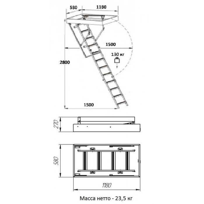 Деревянная чердачная лестница ЧЛ-14 60x120 удобная и функциональная складная конструкция для подъема на чердак или мансарду. Применяется в условиях ограниченного пространства и невозможности поставить стационарную лестничную конструкцию. Изготовление деревянных элементов производится из сосны. В сложенном виде позволяет экономить пространство. Лестница состоит из трёх секций, легко убирается в потолок. Проста в установке. Не требует сборки.