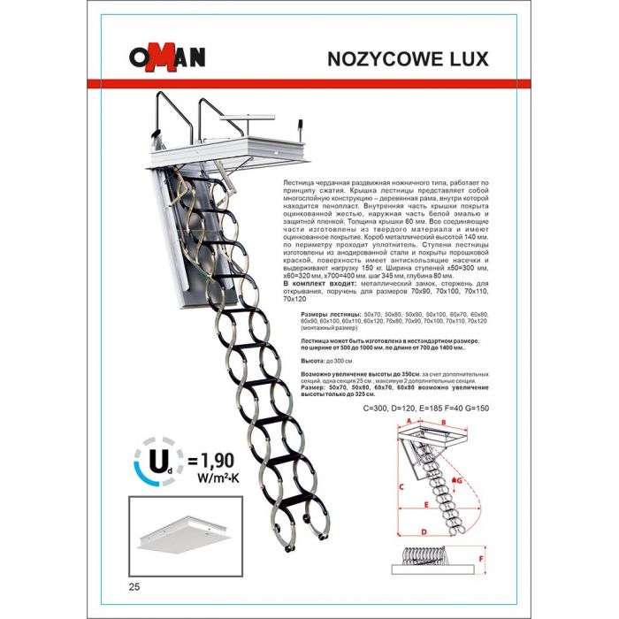 • Специальный запатентованный компанией OMAN металлический замок позволит Вам удобно открывать и закрывать лестницу как изнутри, так и снаружи.