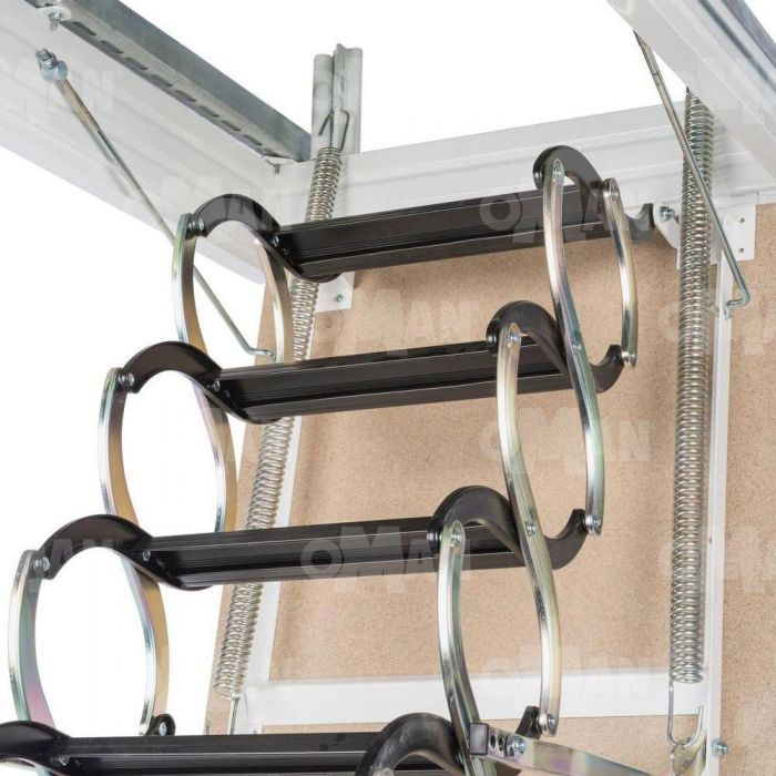 • Специальный запатентованный компанией OMAN металлический замок позволит Вам удобно открывать и закрывать лестницу как изнутри, так и снаружи.