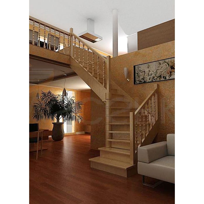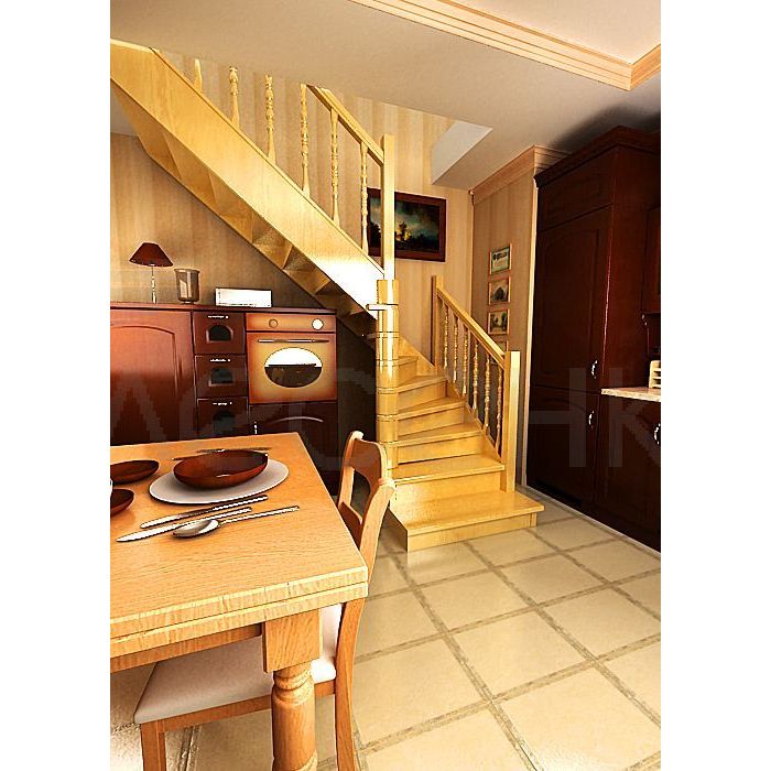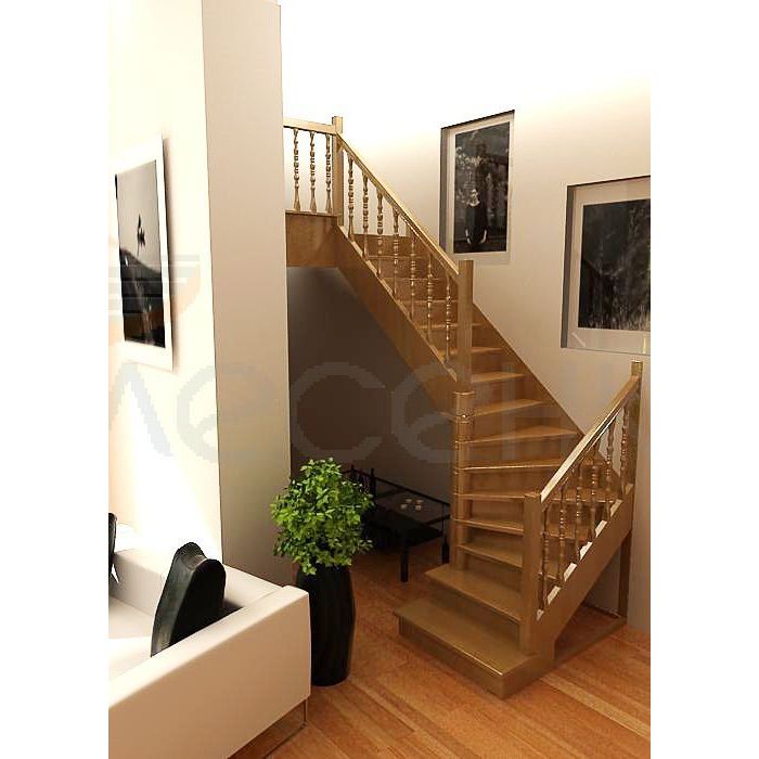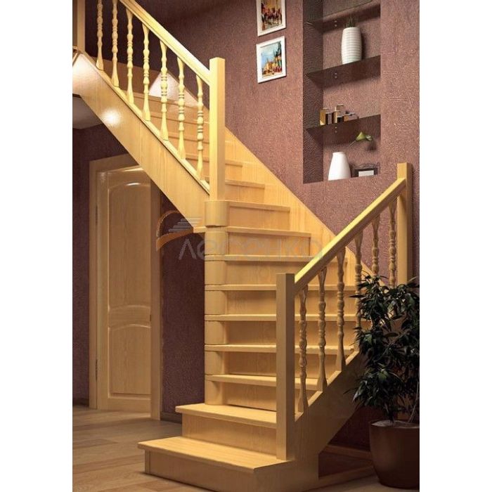 Деревянная межэтажная лестница ЛЕС-02 правозаходная (поворот 90 градусов)