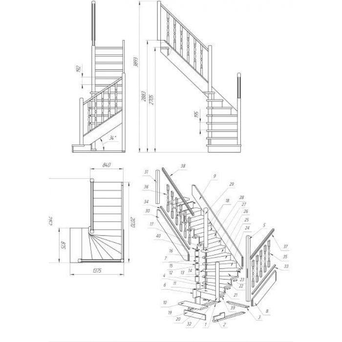 Деревянная лестница поставляется в разобранном виде в одной упаковке и собирается на объекте монтажа по указаниям приведёным в паспорте на лестницу.