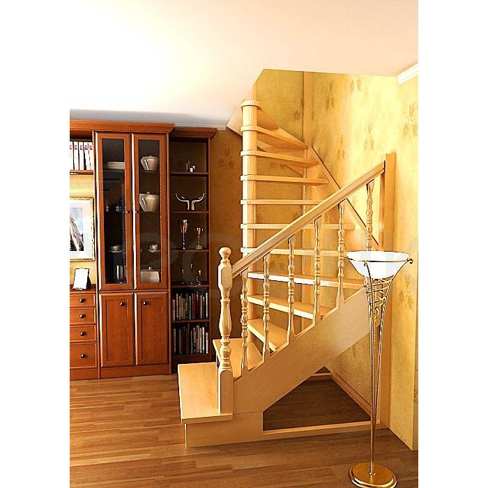 Деревянная лестница поставляется в разобранном виде в одной упаковке и собирается на объекте монтажа по указаниям приведённым в паспорте на лестницу.