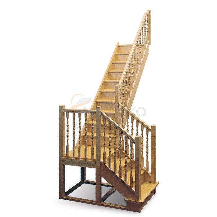 Деревянная лестница поставляется в разобранном виде в одной упаковке и собирается на объекте монтажа по указаниям приведёным в паспорте на лестницу.