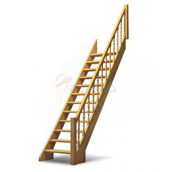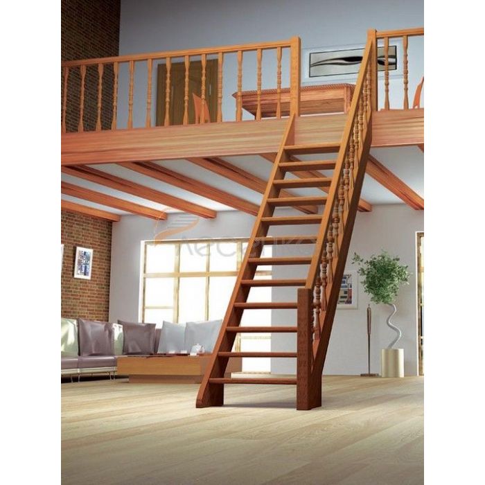Деревянная лестница поставляется в разобранном виде в одной упаковке и собирается на объекте монтажа по указаниям приведённым в паспорте на лестницу.