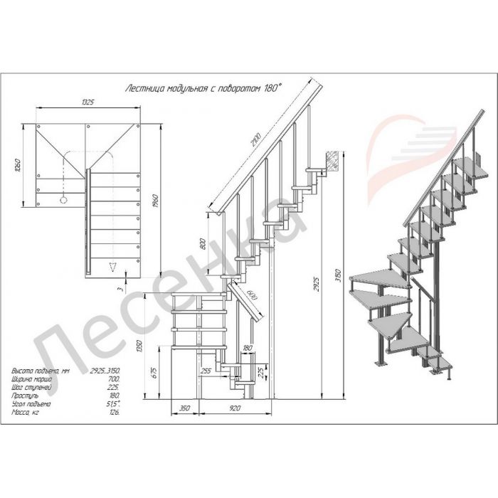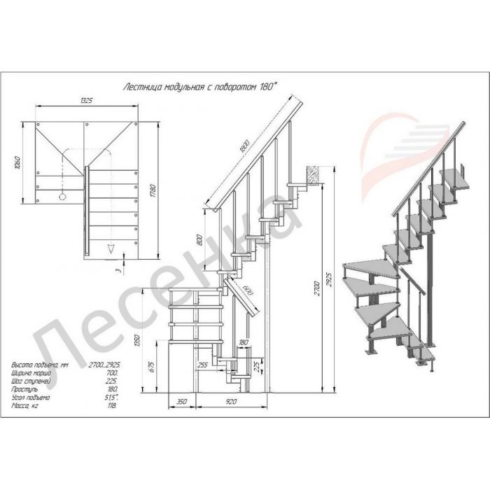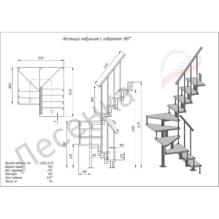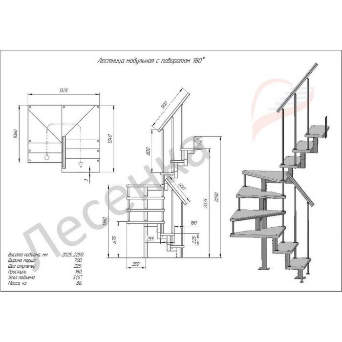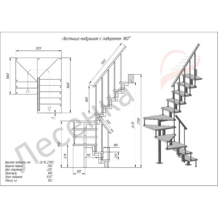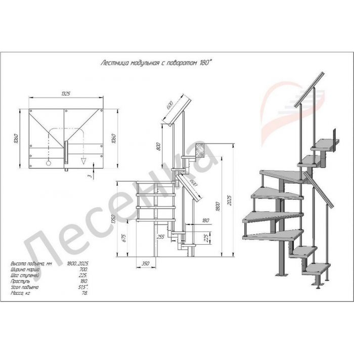 Малогабаритная модульная лестница Эксклюзив-Квадро (с поворотом 180 градусов)