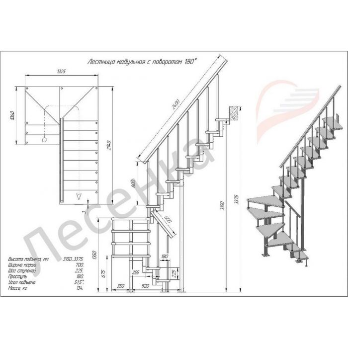 Межэтажная лестница может быть установлена как левым, так и с правым поворотом.