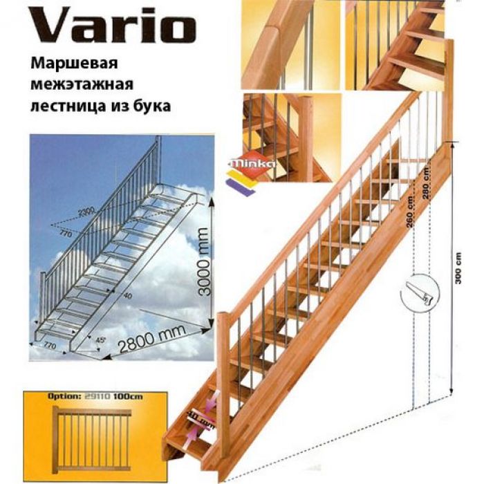 - Ступени толщиной 40 мм выполнены из древесины бука с высококачественным двойным лаковым покрытием;