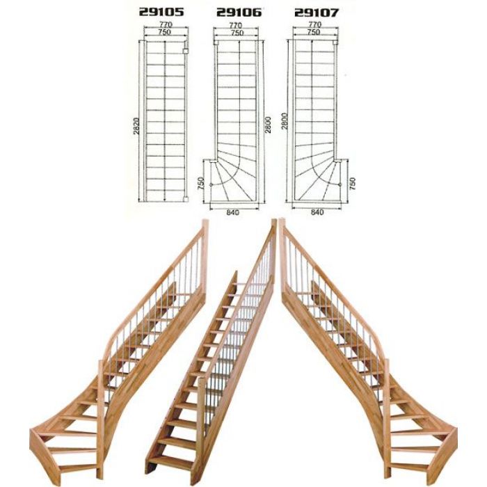 - При прямом исполнении лестницы поручень может быть право- или левосторонним;