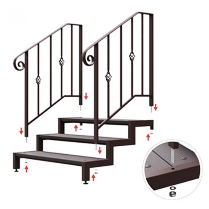 - Съёмные перила – крепление двумя болтами через косоур.