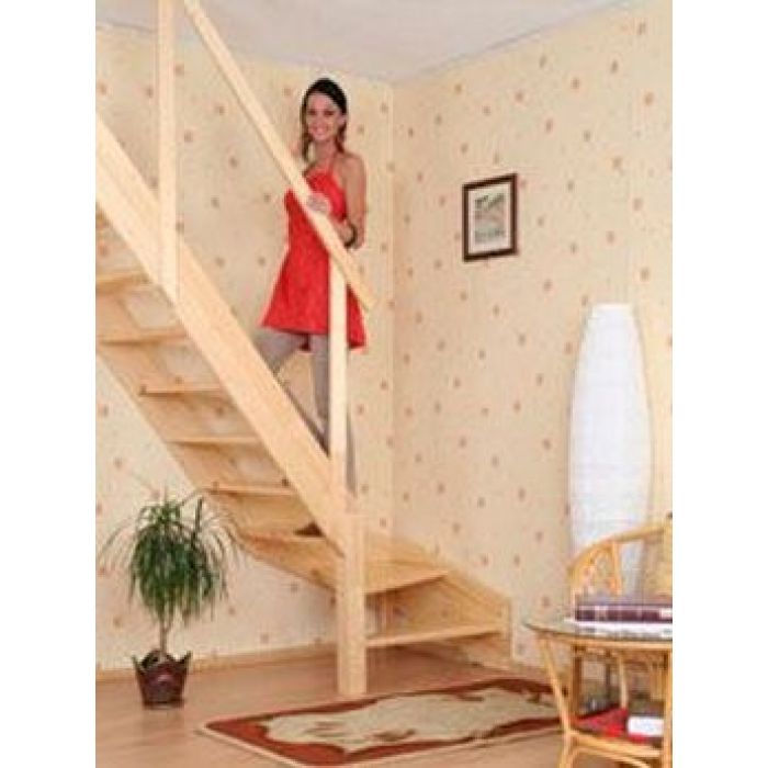Экономичная деревянная лестница с поворотом. Лестница компактна, что позволяет устанавливать её даже в небольших помещениях.