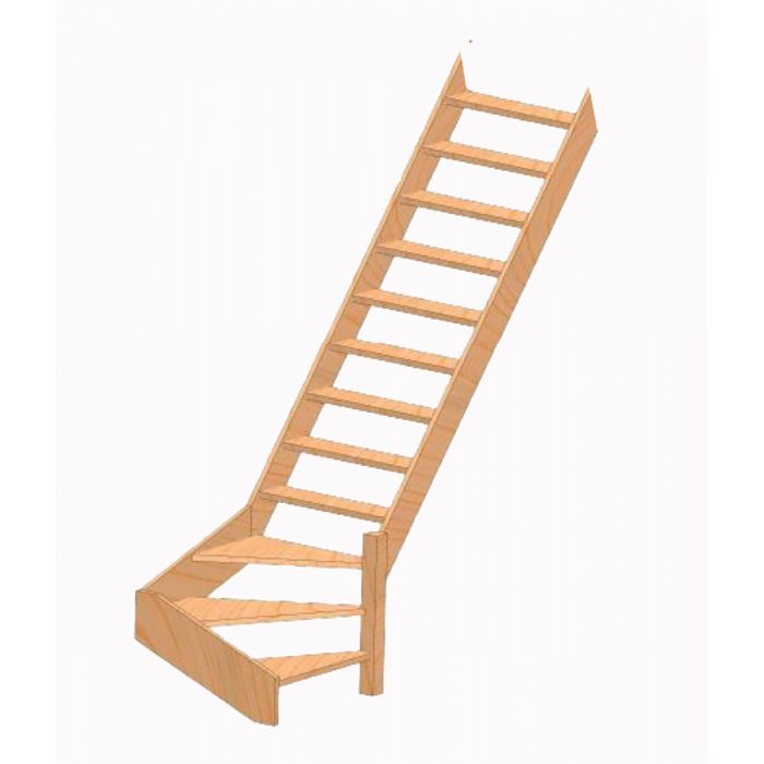 Экономичные межэтажные лестницы для дачи ЛМПО- 12 с поворотом на 90° для самостоятельной сборки с левосторонним заходом. Комфортные и компактные лестницы с использованием забежных ступеней просты в установке без использования специальных инструментов. Поставляются в комплекте, используются только для внутренних интерьеров. Лестницы изготовлены из высококачественных хвойных пород дерева сосны или ели, легко поддаются дополнительной обработке (нанесению лака или краски). Могут поставляться в комплекте с прямыми или фигурными балясинами, столбами и поручнем.