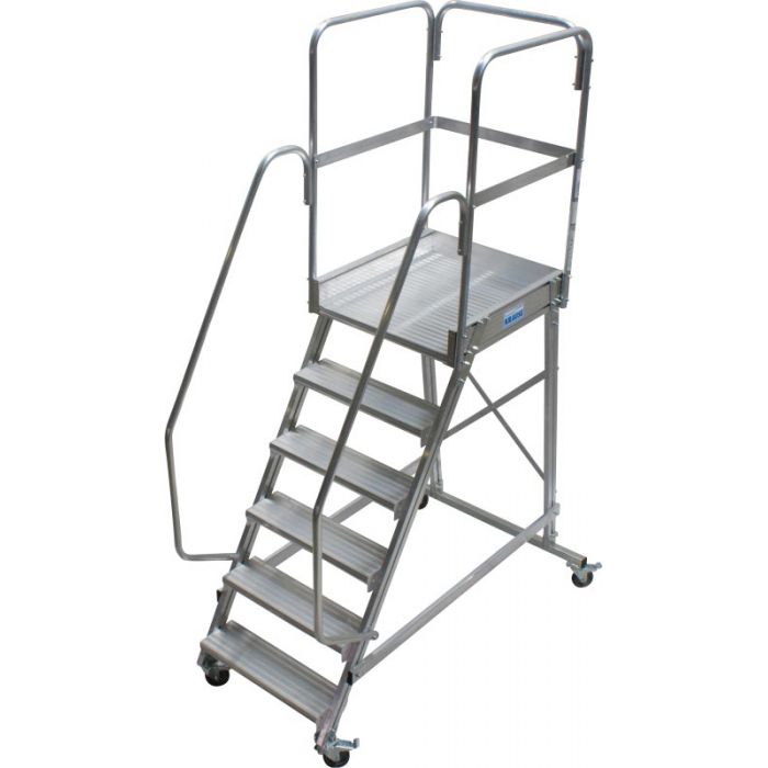 - Широкие ступени из алюминия, двусторонние перила и трёхсторонее ограждение площадки.