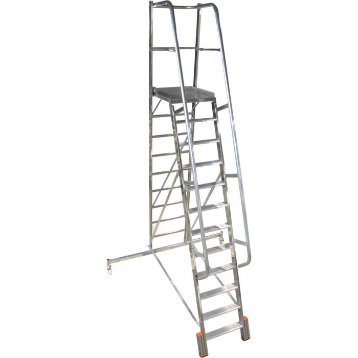 • Односторонняя складная алюминиевая лестница с платформой, с новой системой балластировки