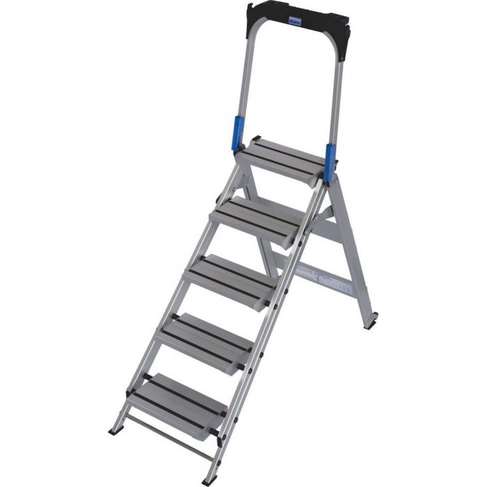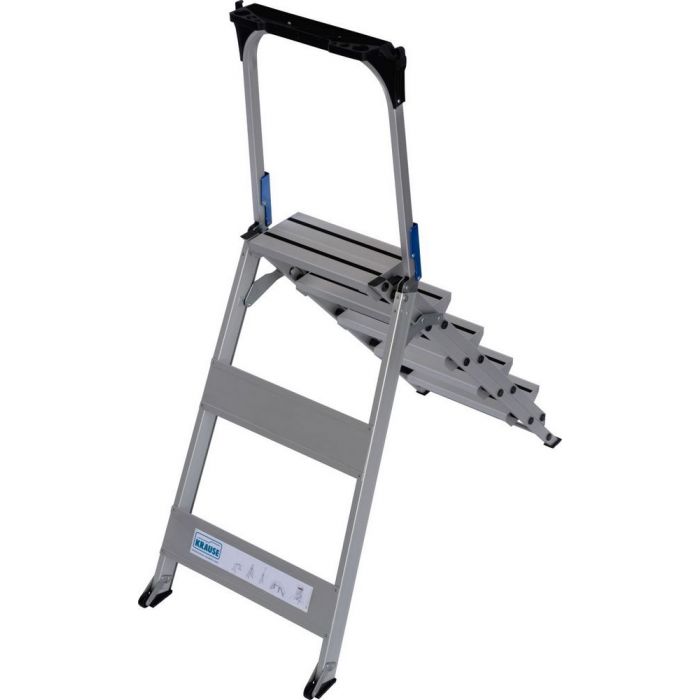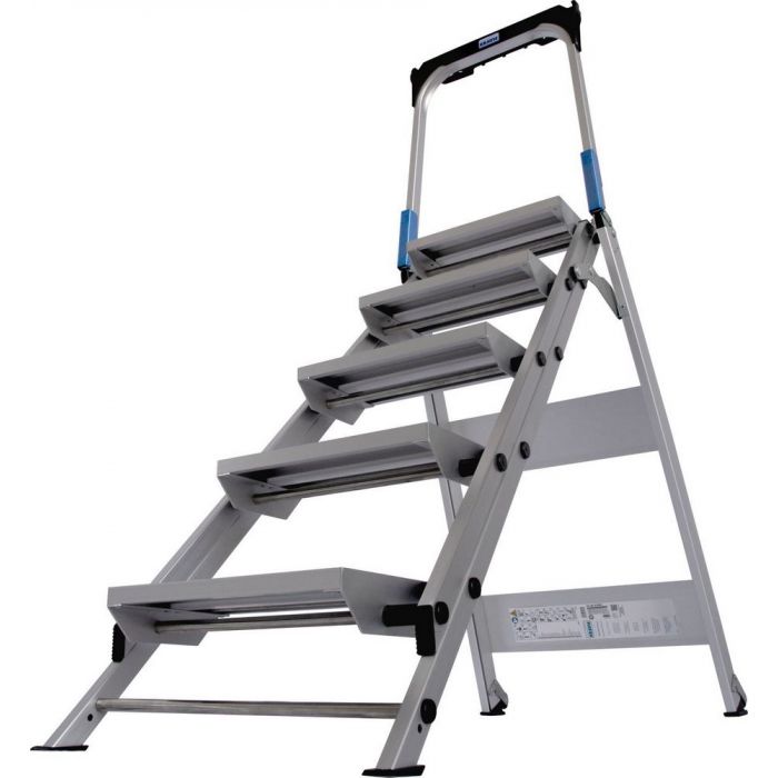 - Прочная, складываемая, алюминиевая подставка с большими ступенями для безопасного подъёма и работы в различных сферах.