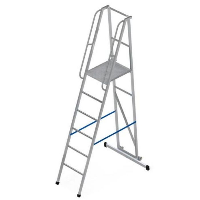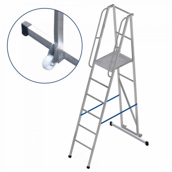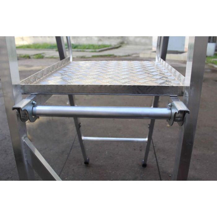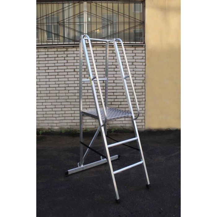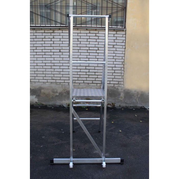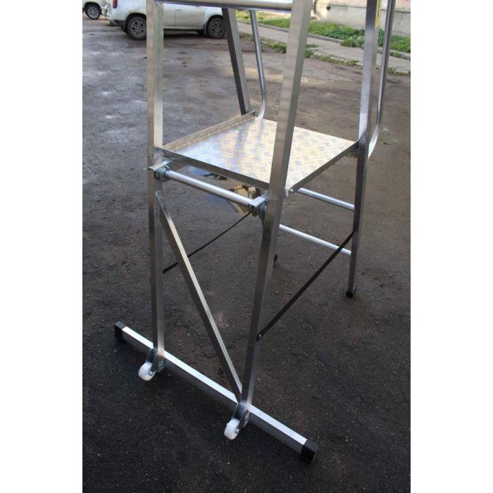 Лестница-платформа Мегал ЛПФВА-5 Н=1,8 с резиновыми башмаками, траверсой, колесами алюминиевая