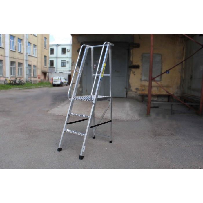 Лестница-платформа Мегал ЛПФВА-6 Н=1,0 с широкими ступенями алюминиевая