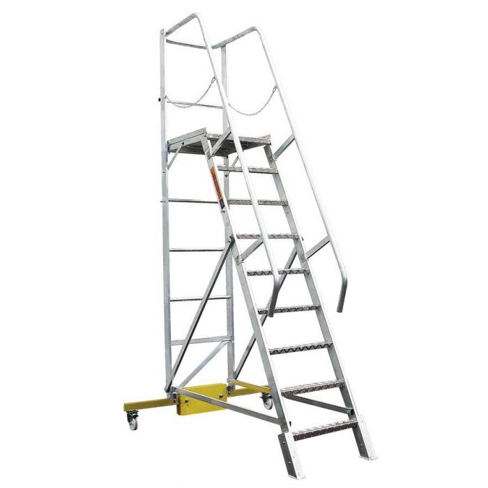 алюминиевая лестница с площадкой высотой 1,1 м. оснащена системой балластировки.