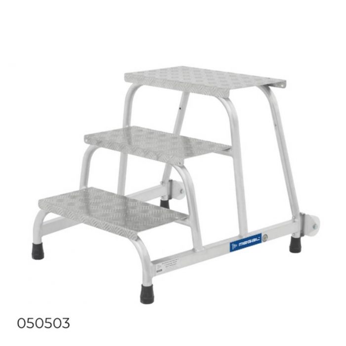 - Ступени шириной 240 мм из рифленого алюминиевого листа для безопасного подъема и удобства в работе.