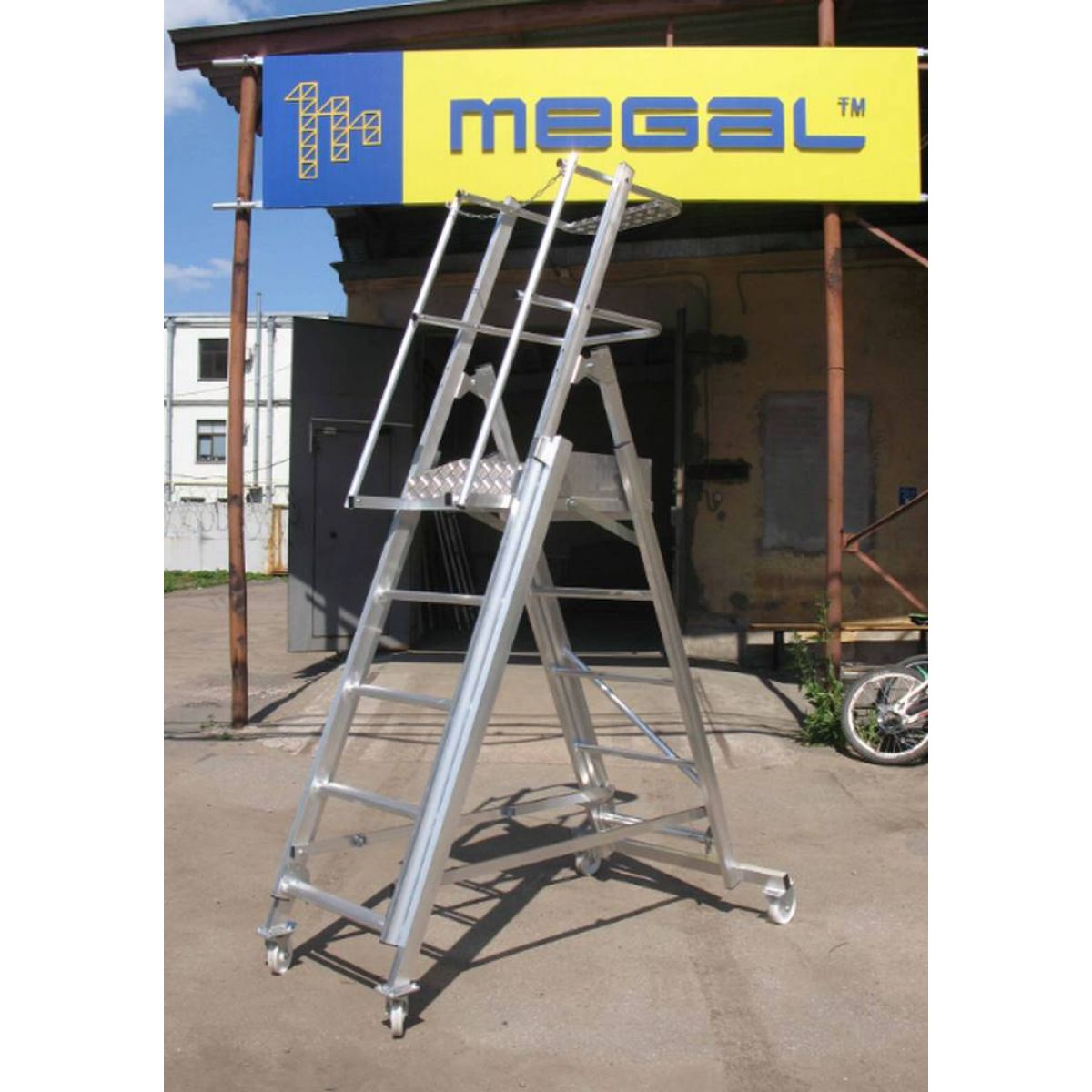 Алюминиевая платформа Megal ТЛП-1,3-1,9 с телескопическими лестницами и 4-мя колесами