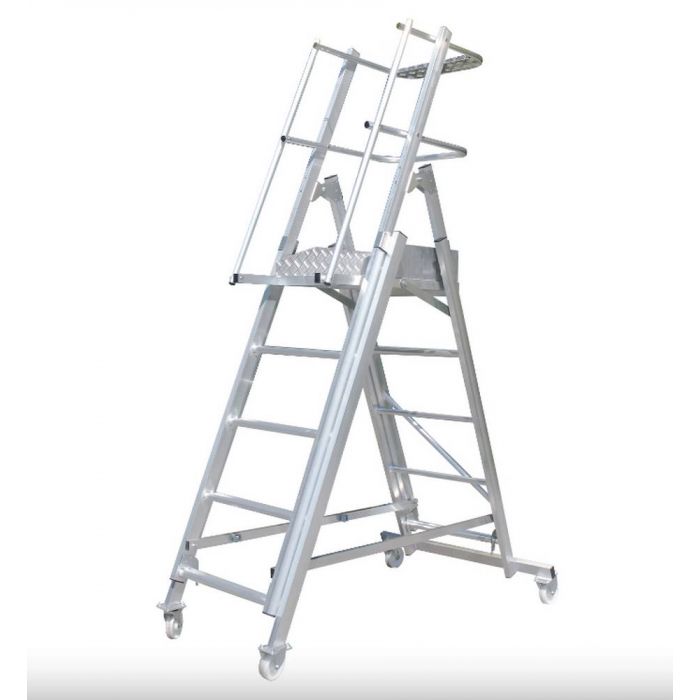 Алюминиевая платформа Megal ТЛП-1,6-2,5 с телескопическими лестницами и 4-мя колесами