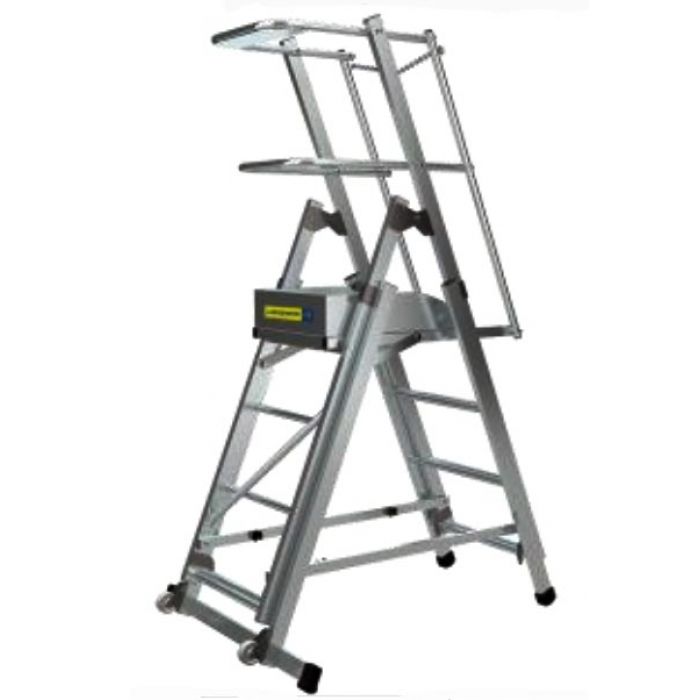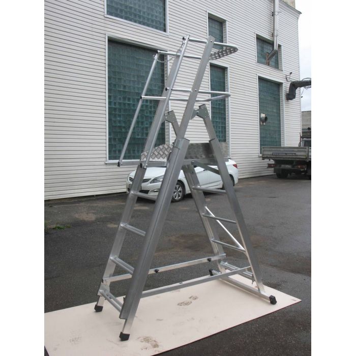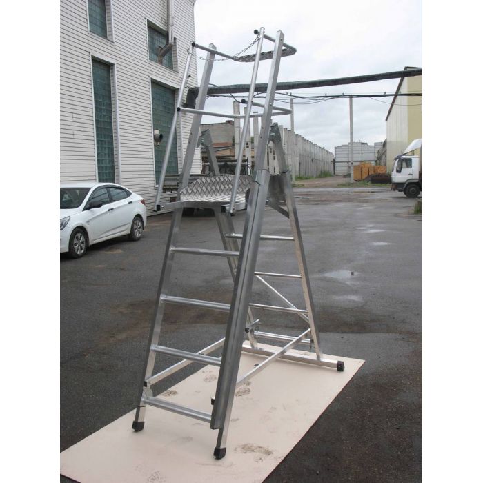 - 2 колеса для удобства перемещения Регулируемая высота установки площадки 2,1 м., 2,4, 3,4, 3,7 м.