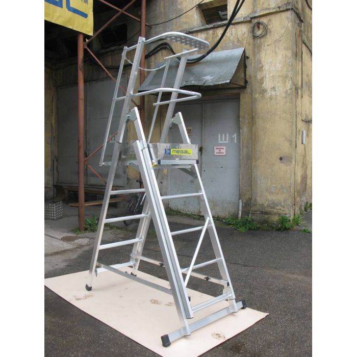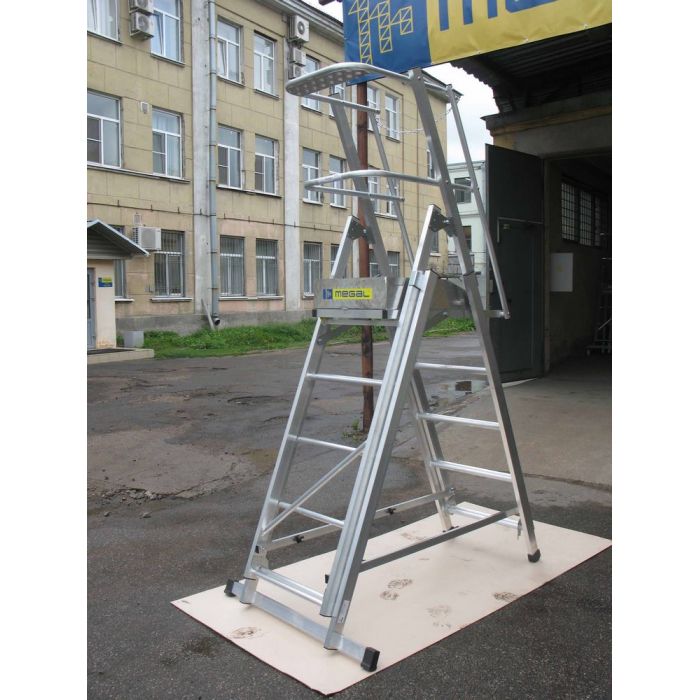 Алюминиевая платформа Megal ТЛП-2,1-3,7 с телескопическими лестницами и 4-мя колесами