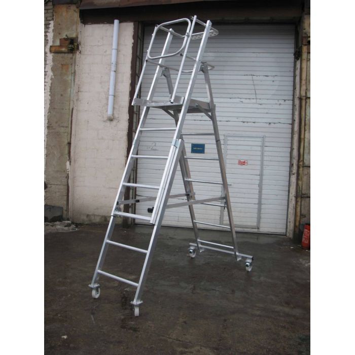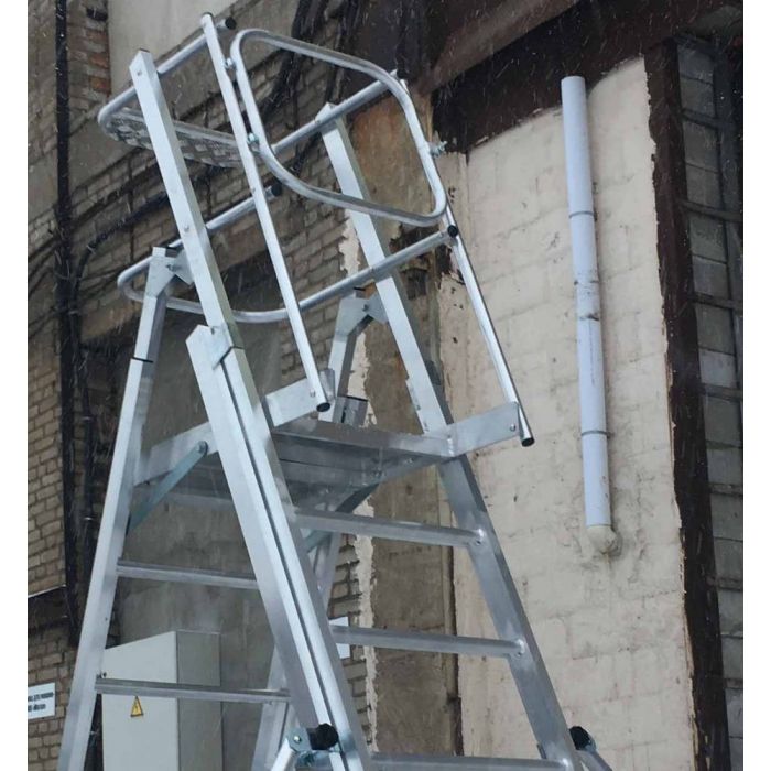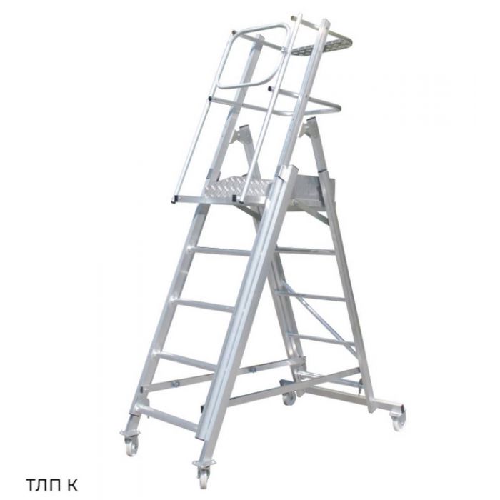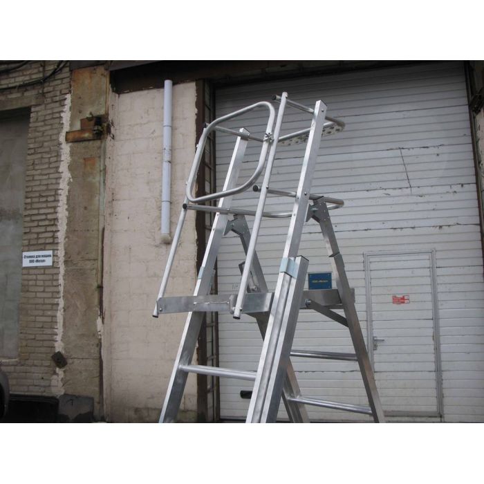 - Большая рабочая алюминиевая площадка 700x500 мм с перилами и коленной планкой обеспечивает максимум безопасности и удобства при работе