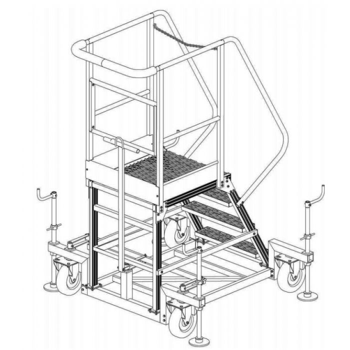 Колесная база оснащена винтовыми домкратами и грузами, обеспечивающими устойчивость изделия при работе на высоте