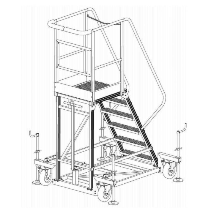 Колесная база оснащена винтовыми домкратами и грузами, обеспечивающими устойчивость изделия при работе на высоте
