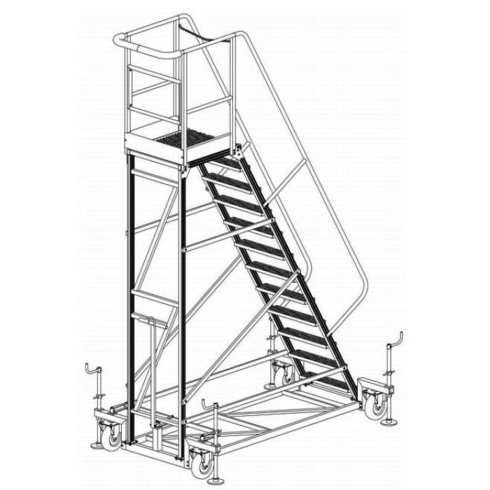 Колесная база оснащена винтовыми домкратами и грузами, обеспечивающими устойчивость изделия при работе на высоте