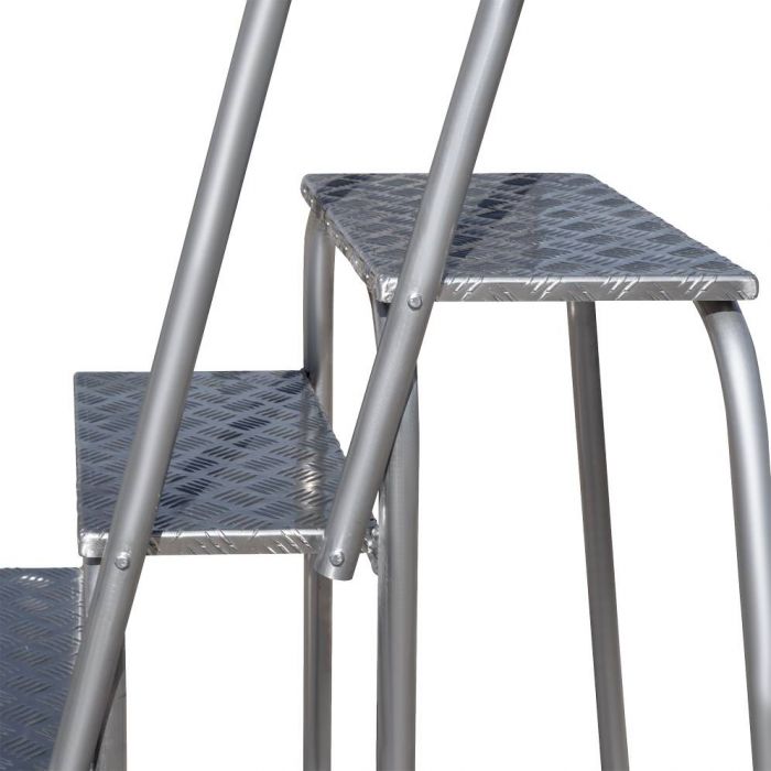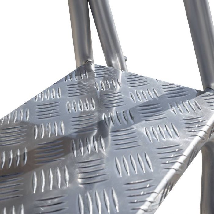 • Широкие ступени — площадки 240 мм и поручнем из рифлёного алюминиевого листа для надёжного сцепления.