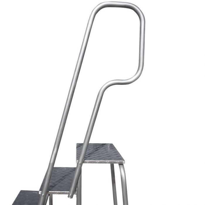 • Съёмный переставляемый поручень для безопасного подъёма и спуска, высотой 1 м. от последней ступени.