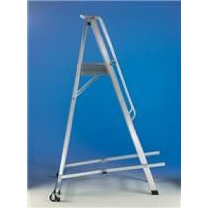 Мобильная алюминиевая стремянка с большой рабочей площадкой и перилами
