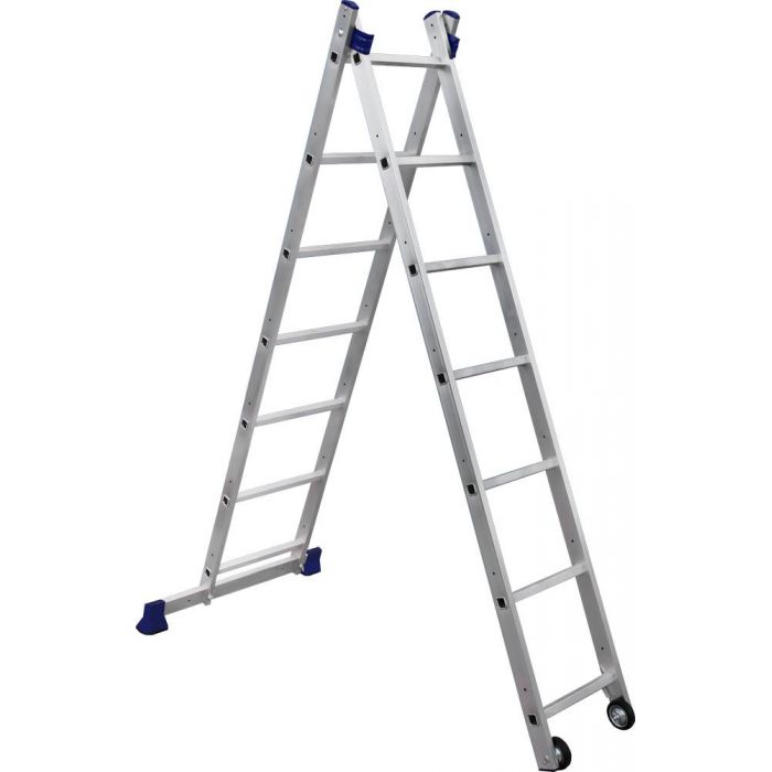 Алюминиевая лестница-помост подходит как для профессионального использования на строительных площадках, так и для бытовых нужд. Её можно использовать как подмости или в виде одно- или двухсекционной лестницы, что делает её универсальным инструментом для различных задач.