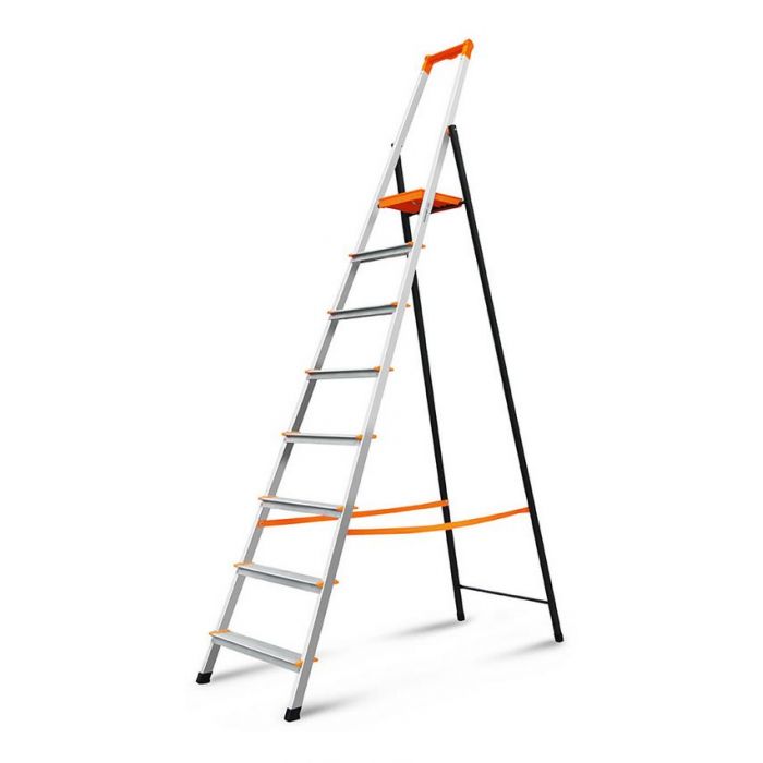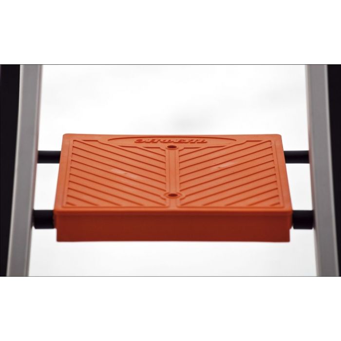 - Соединение передней и задней стоек позволило уменьшить размер стремянки в собранном виде до 8 см (до ширины ступени).
