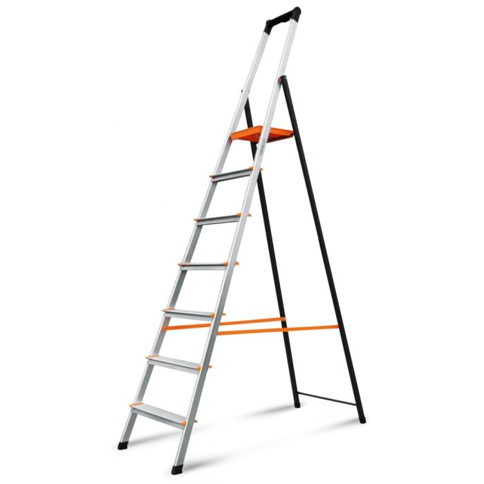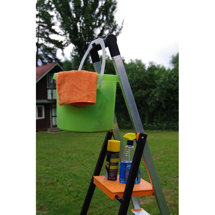 - Поручень оснащен крюком для ведра и имеет лоток для инструмента и крепежа.
