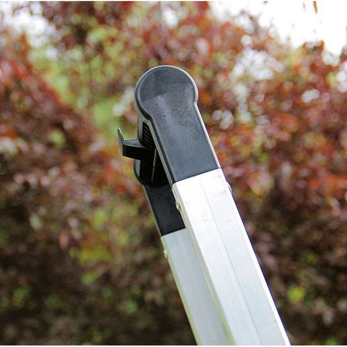 - Оригинальное соединение передней и задней секций позволило уменьшить размер стремянки в собранном виде до 8 см (до ширины ступени).