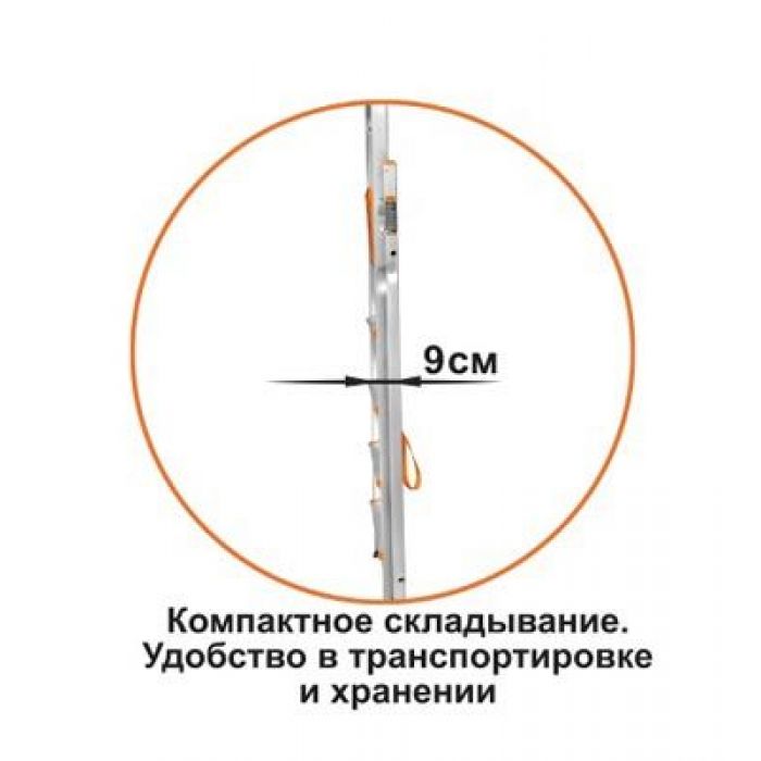 - Благодаря специальному алюминиевому сплаву и форме профиля удалось добиться рекордного показателя соотношения вес стремянки к её высоте! Теперь стремянку легко брать одной рукой и переносить.