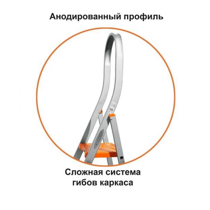 • Стремянка выполнена из оригинального восьмигранного АНОДИРОВАННОГО алюминиевого профиля размером 50х20 мм., оставляющего чистыми руки, имеющего несколько гибов передней и задней секции. Это позволило создать идеальные форму и механизм складывания.