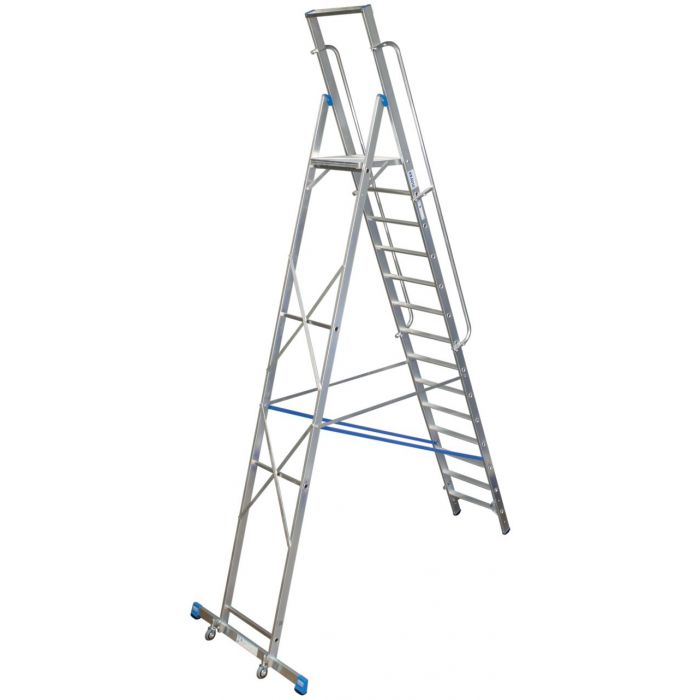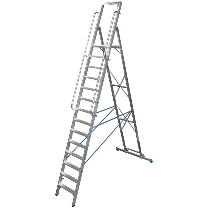• Благодаря очень высокой (1,0 м) эргономичной дуге безопасности со встроенным отделением для инвентаря работа на этой лестнице не требует больших нагрузок на позвоночник