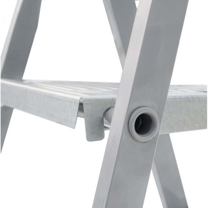 - Прочное крепление ступеней к боковинам 6 заклёпками придаёт конструкции высокую устойчивость