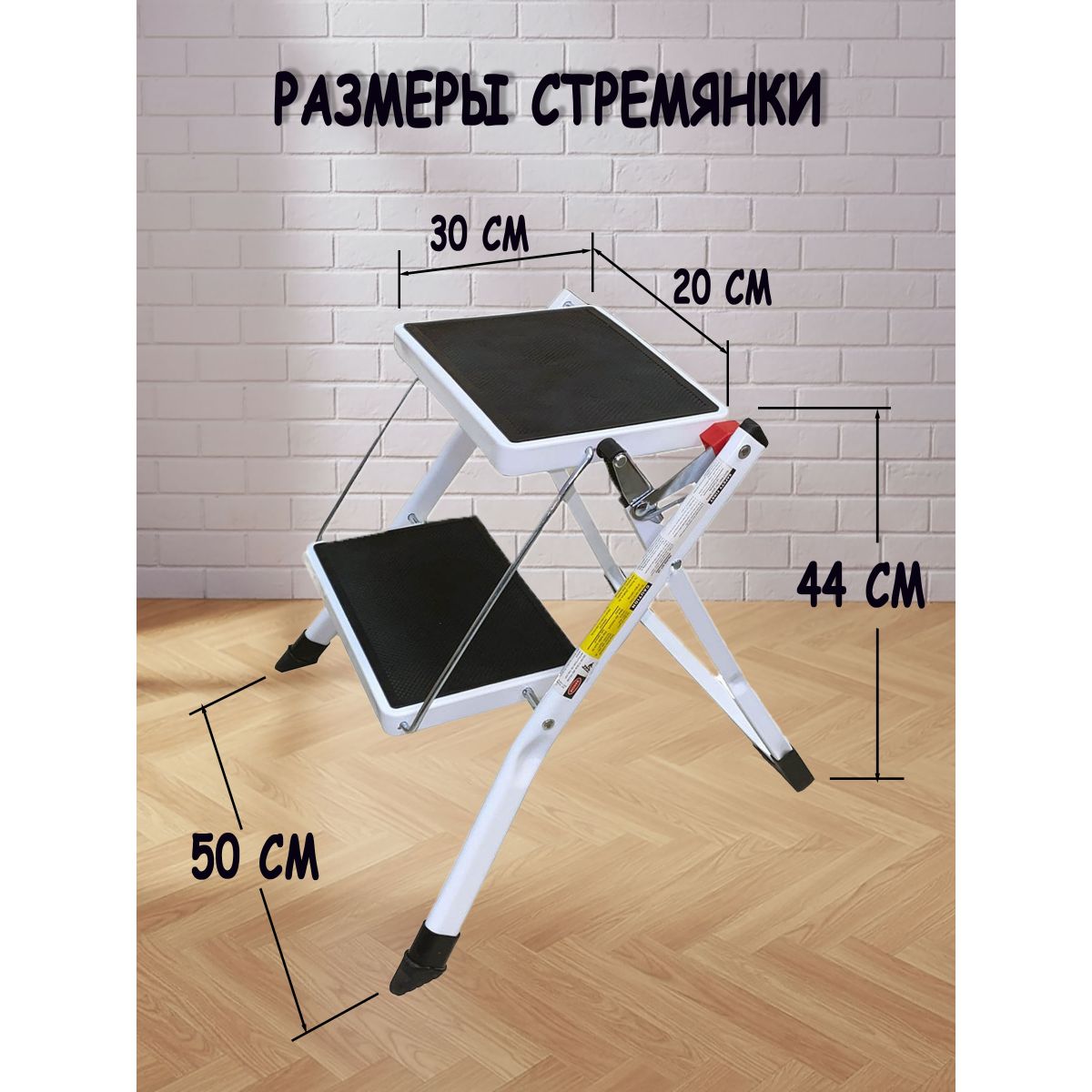 Практичная стремянка-табурет с простым механизмом раскладывания. Нажмите на клавишу — и вы на нужной высоте.