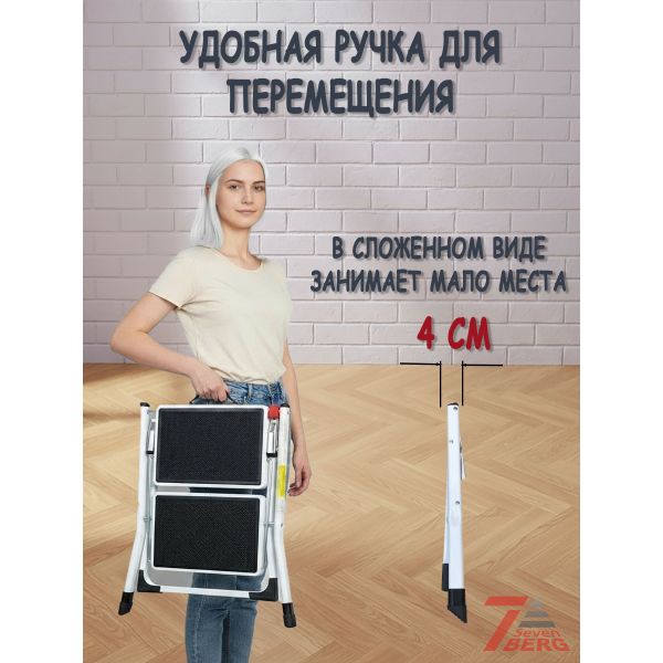 Стальная стремянка-табурет SevenBerg Mini — надежность и комфорт для вашего дома. Эта компактная модель создана для ежедневных задач: от замены лампочки до доступа к верхним полкам.