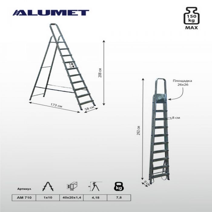 Посмотреть другие размеры алюминиевых стремянок Алюмет серии АМ можно здесь.