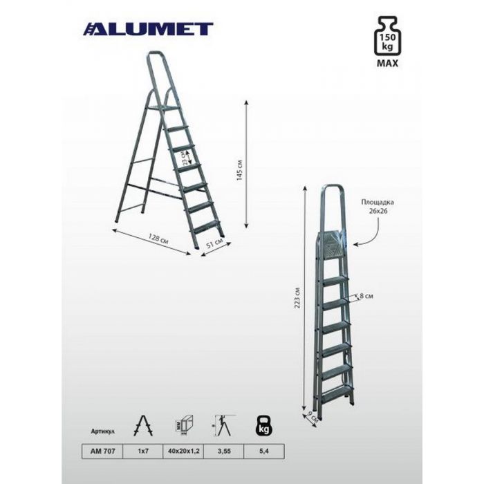 Приобретая стремянку Алюмет АМ707, вы получаете надежного помощника для выполнения задач на высоте.