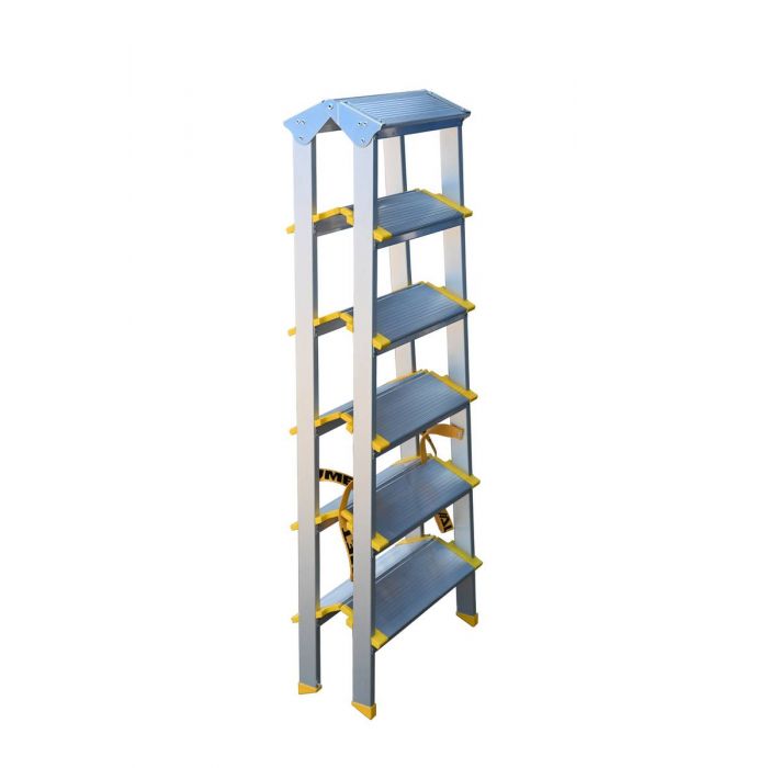 - Долговечность: анодированное покрытие защищает от коррозии, что увеличивает срок службы стремянки.