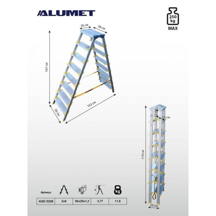 Стремянка алюминиевая Алюмет ASD 5208