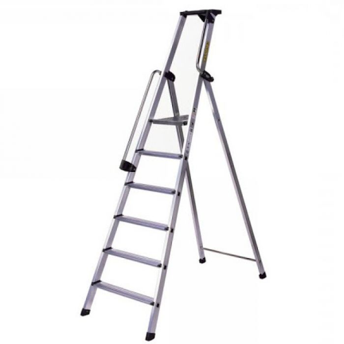 - Увеличенная на 40% по сравнению с обычными стремянками литая, с рифленой поверхностью, рабочая площадка (40 см х 27,5 см)
