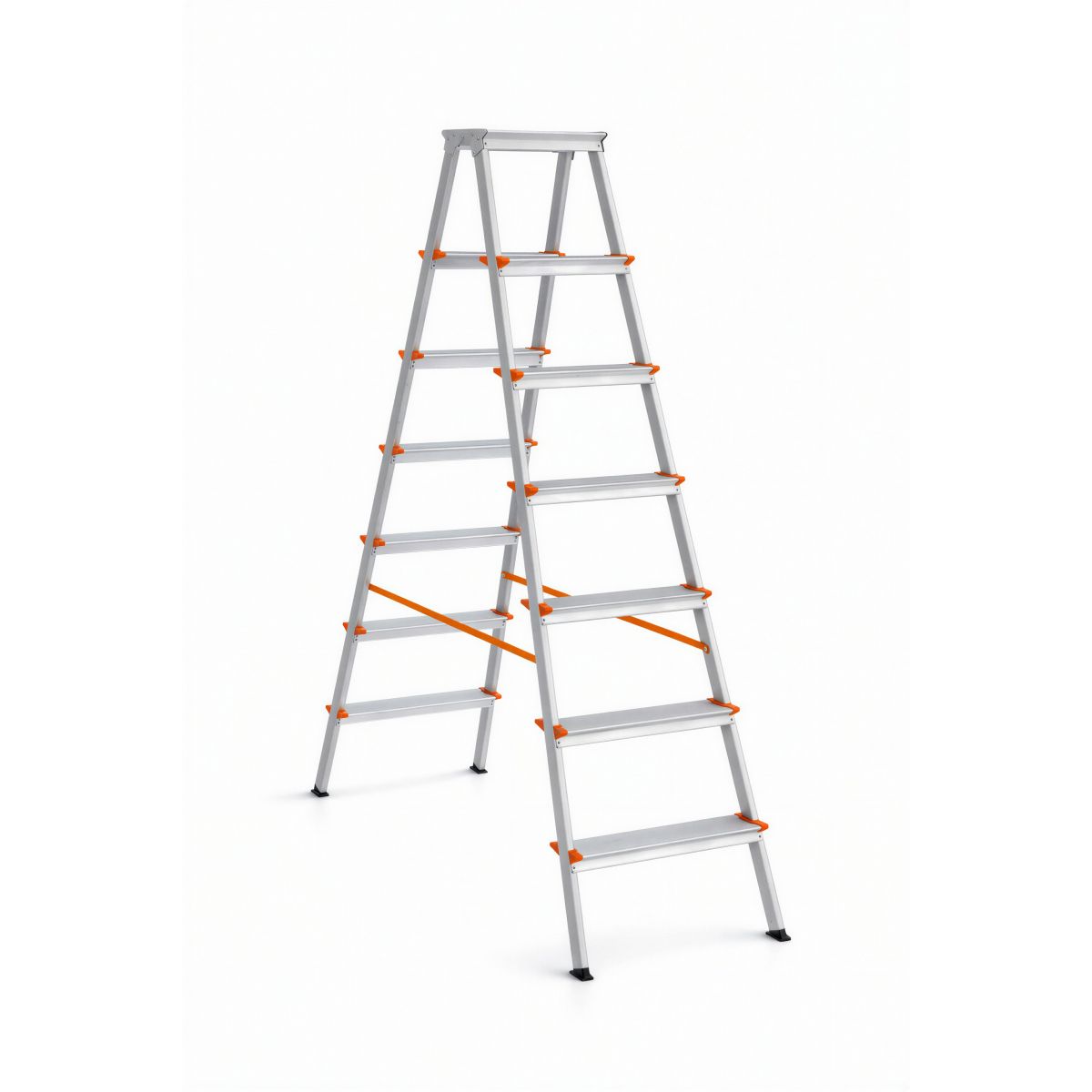 Стремянка алюминиевая двухсторонняя с широкими ступенями представляет собой свободностоящую переносную лестницу, имеющую две стороны для подъема на высоту. Направляющие и ступени изготовлены из высокопрочного алюминиевого сплава, что обеспечивает прочность и долговечность при минимальном весе. Складная стремянка — ваш надежный помощник на производстве, в быту, идеальное решение для дома, офиса и сада. Стремянка в рабочем положении надежно фиксируется двумя страховочными ремнями. Верхняя рабочая площадка образует лоток в рабочем положении из двух верхних ступеней. Ширина ступеней - 130 мм. Ступени имеют рифленую противоскользящую поверхность, что способствует безопасному подъёму и спуску.
